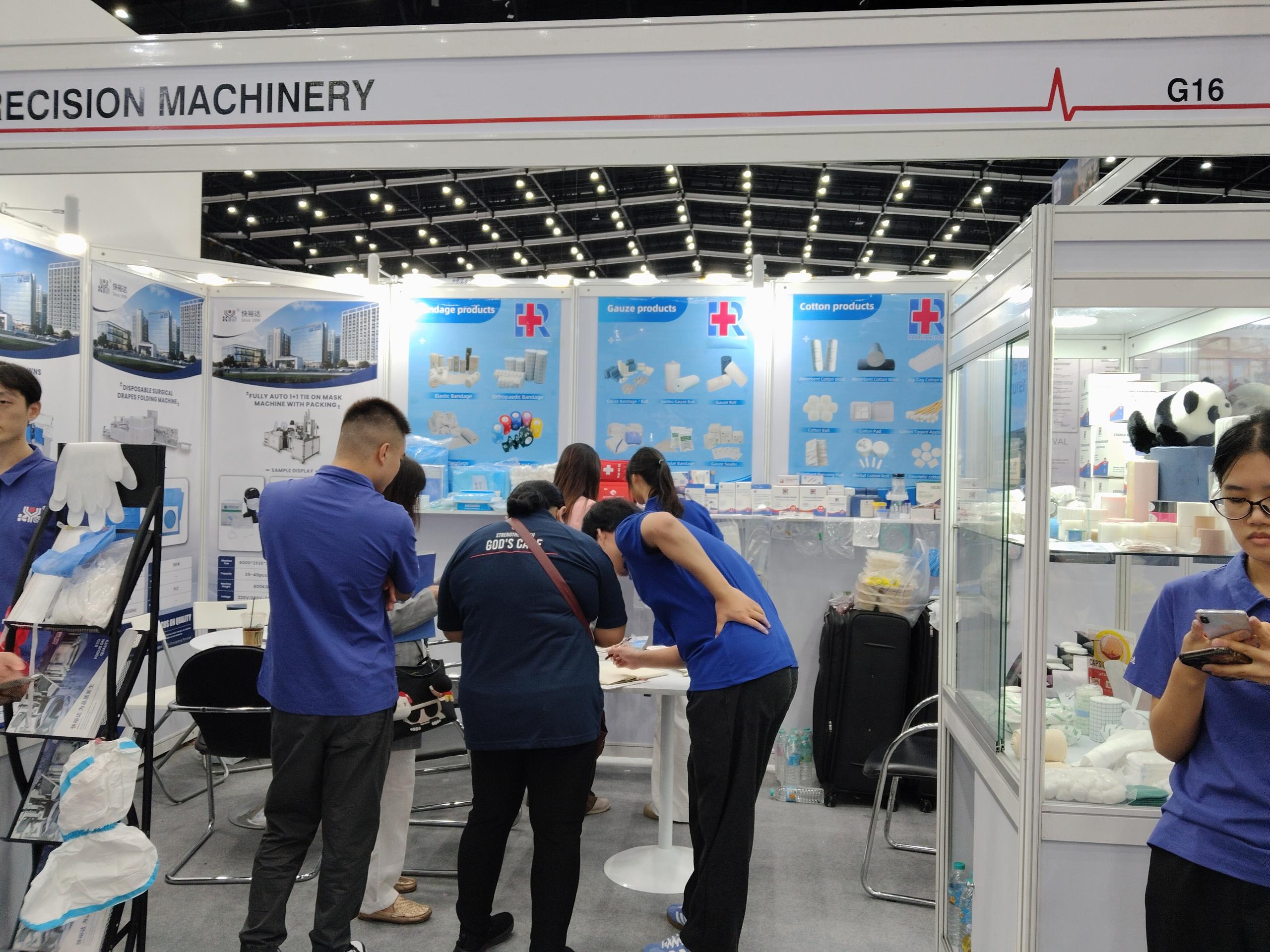 प्रदर्शनी स्थल पर HAORUN MEDICAL का G16 बूथ बहुत ही आकर्षक है। जैसा कि ऑन-साइट चित्रों से देखा जा सकता है, और चारों ओर विभिन्न चिकित्सा उत्पादों के प्रदर्शन पोस्टर हैं, जिनमें विभिन्न चिकित्सा आपूर्ति जैसे पट्टियाँ और कपास झाड़ू शामिल हैं। एक समान नीले कपड़े पहने कर्मचारी, परामर्श के लिए आने वाले पेशेवर दर्शकों के साथ संवाद करने में व्यस्त हैं। कुछ सावधानीपूर्वक उत्पादों की विशेषताओं और फायदों से दर्शकों को परिचित करा रहे हैं, जबकि अन्य ग्राहकों की जरूरतों और फीडबैक को सावधानीपूर्वक रिकॉर्ड कर रहे हैं। साइट पर माहौल गर्मजोशीपूर्ण और पेशेवर है।